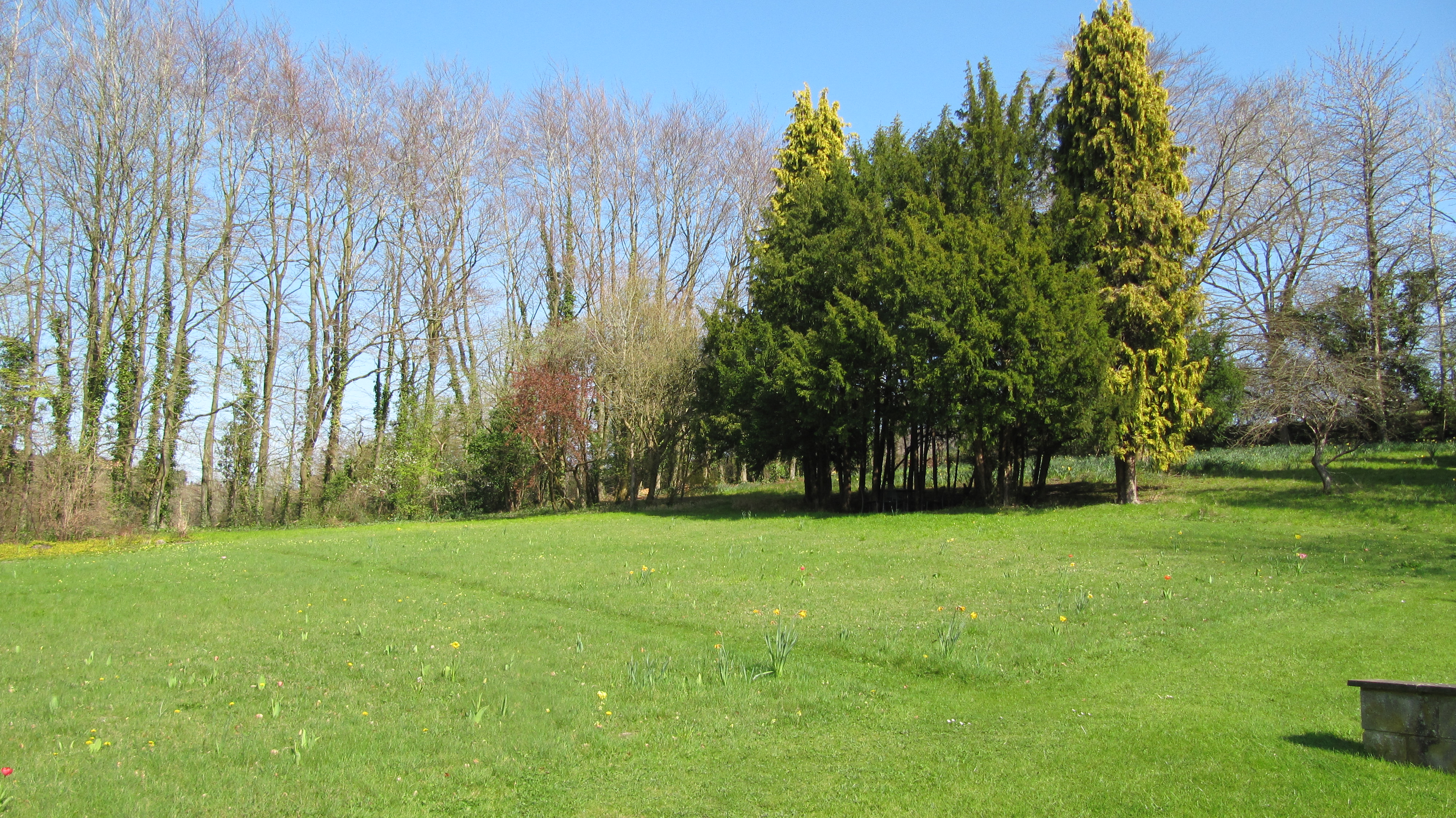 By the mid/end of April, the trees were coming into leaf including the copper beech, far right.