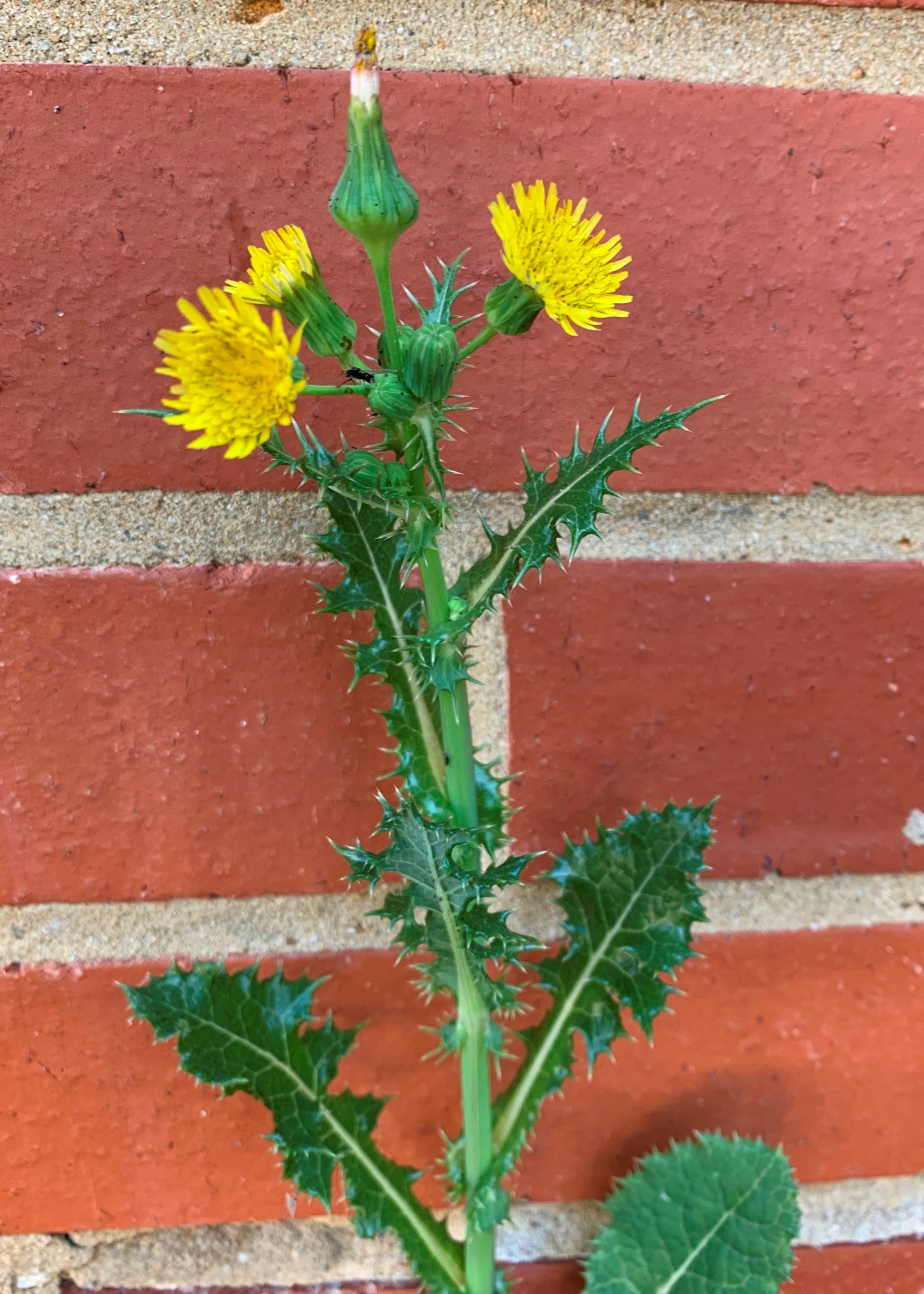 July 2021 and a new wild flower has been found, a sow thistle growing in a crack against a wall.
